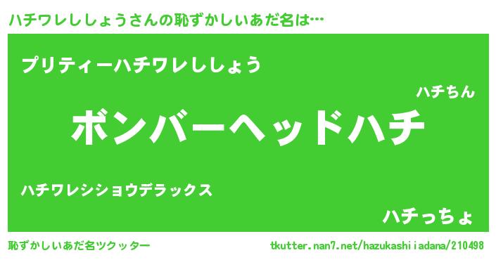 | 意味不明あだ名 | 『住所不定無職ハチワレししょう(4歳)』 |