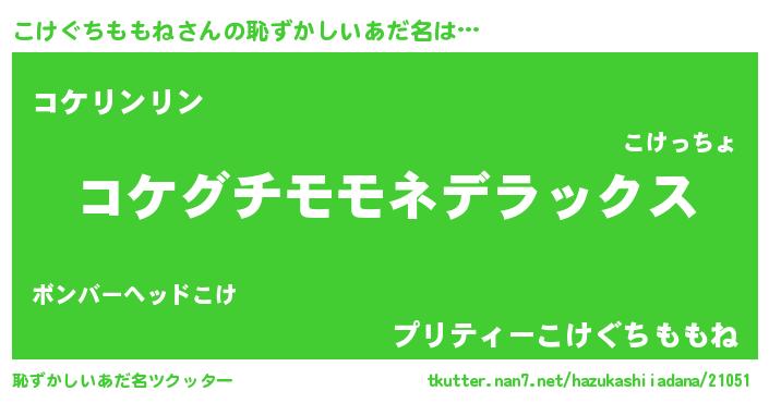 | 欧米人風あだ名 | 『ダレノガレこけぐちももね』 |