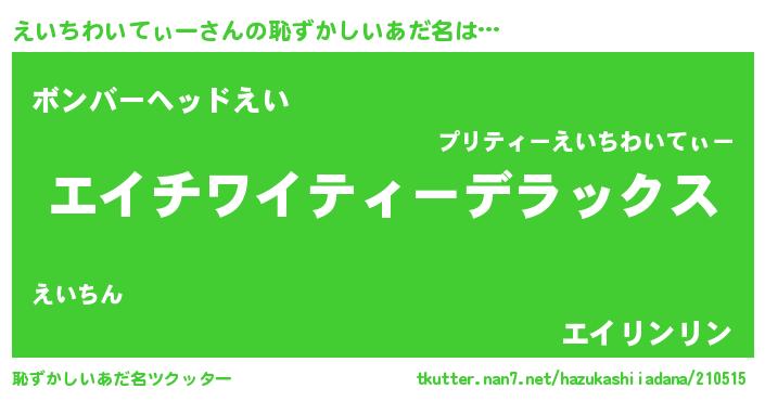| 意味不明あだ名 | 『自称えいちわいてぃー』 |