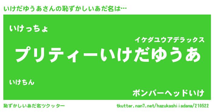 | 男性向けラノベタイトル風あだ名 | 『いけだゆうあの憂鬱』 |