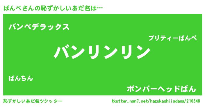 | 意味不明あだ名 | 『とにかく怪しいばんぺ』『自称ばんぺ』 |