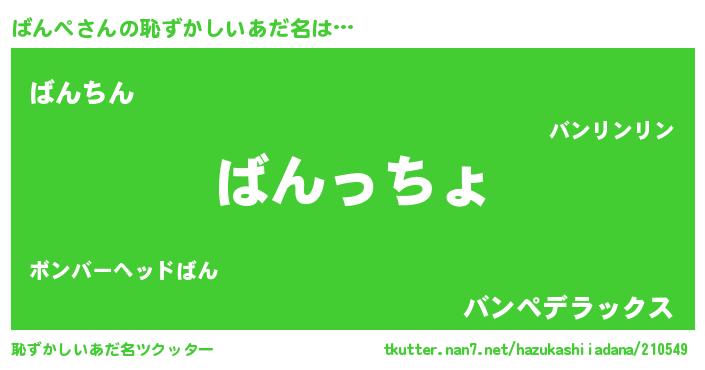 | ヘコむあだ名 | 『豆乳』『ばんぺ(笑)』『ばんっ子』 |
