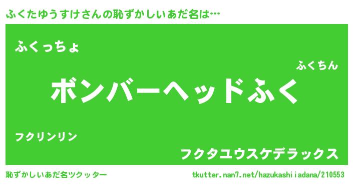 | 男性向けラノベタイトル風あだ名 | 『おまえをオタクにしてやるから、俺をふくたゆうすけにしてくれ! 』 |