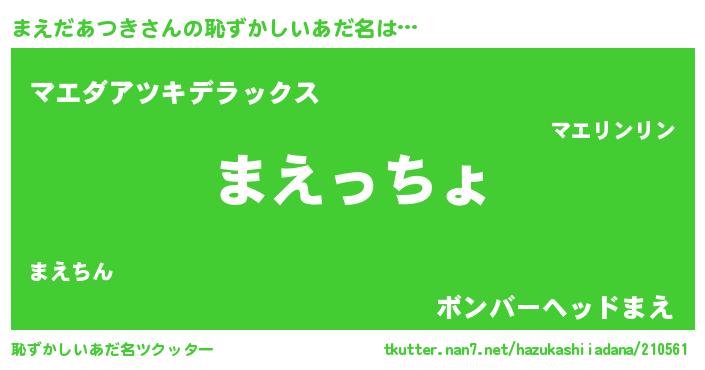 | 欧米人風あだ名 | 『まえだあつき・ステッグマイヤー』 |