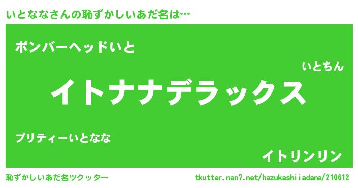 | ヘコむあだ名 | 『いとっぺ』『いとなな(笑)』『豆乳』 |
