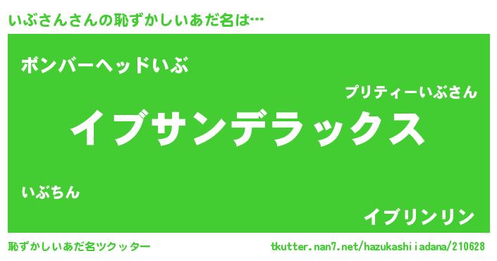 | 男性向けラノベタイトル風あだ名 | 『Re:いぶさんから始める異世界生活』 |