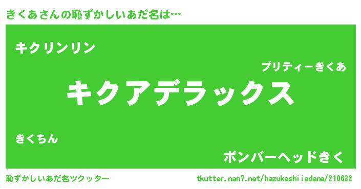 | 意味不明あだ名 | 『自称きくあ』『つくし科きくあ属』 |