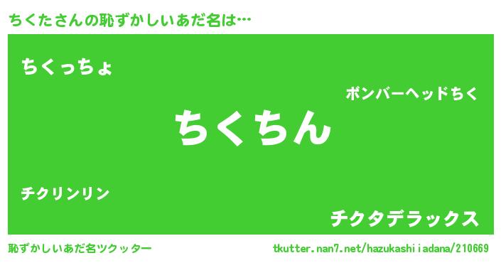 | ファンタジー風あだ名 | 『チクディッシュ』『エターナルチクター』 |