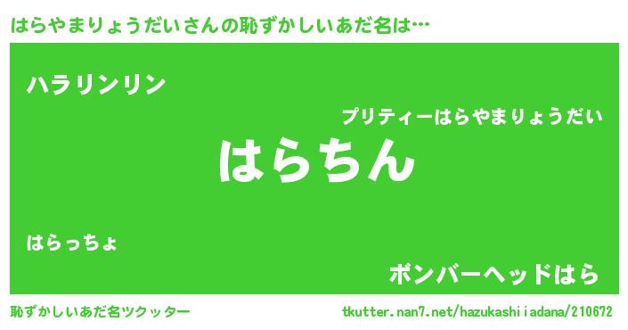 | ヘコむあだ名 | 『はらやまりょうだい(遠い目)』『はらっ子』 |