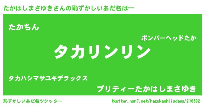 | 意味不明あだ名 | 『住所不定無職たかはしまさゆき(9歳)』 |