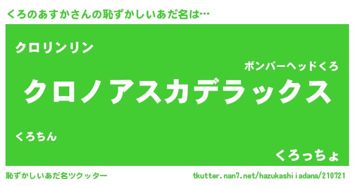 | 意味不明あだ名 | 『自称くろのあすか』 |