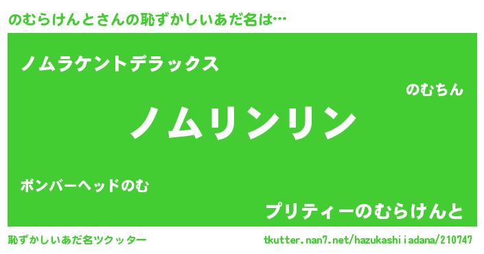 | 意味不明あだ名 | 『とにかく怪しいのむらけんと』 |