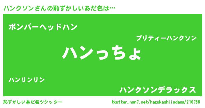 | ヘコむあだ名 | 『つくし』『ハンにー』『ハンっちょ』 |