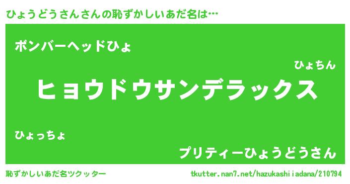 | 意味不明あだ名 | 『自称ひょうどうさん』 |