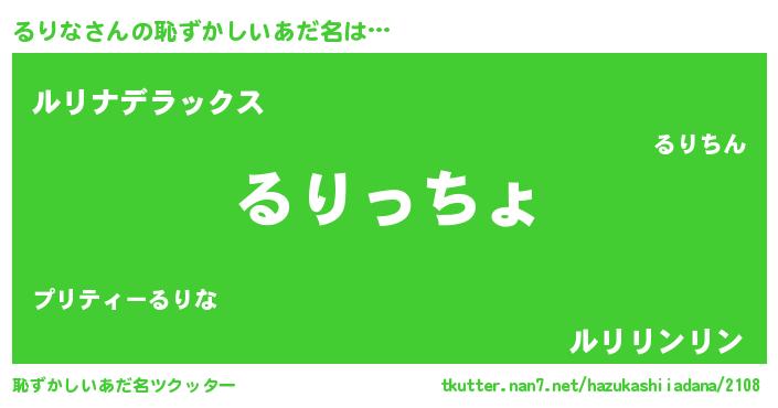 | 男性向けラノベタイトル風あだ名 | 『この素晴らしい世界にるりなを!』 |