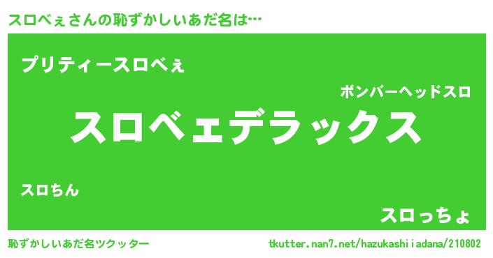 | ヒーロー風カッコイイあだ名 | 『超時空戦士スロベェ』『ネオスロベェ』 |