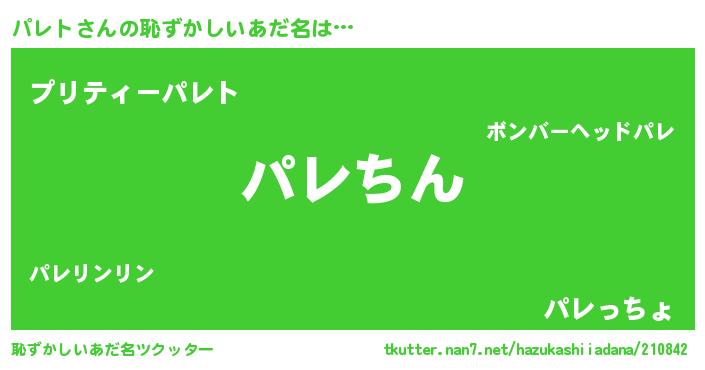 | 意味不明あだ名 | 『永久保存パレト』『ペロリンパレト』 |