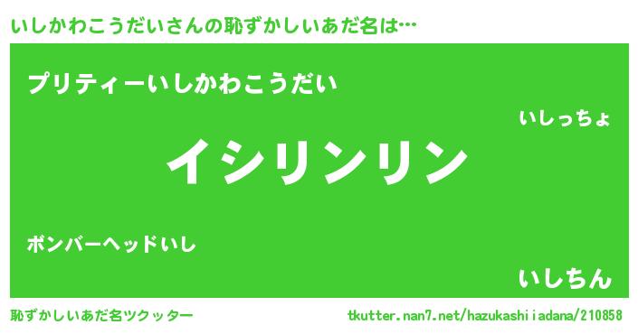 | 意味不明あだ名 | 『とにかく怪しいいしかわこうだい』 |