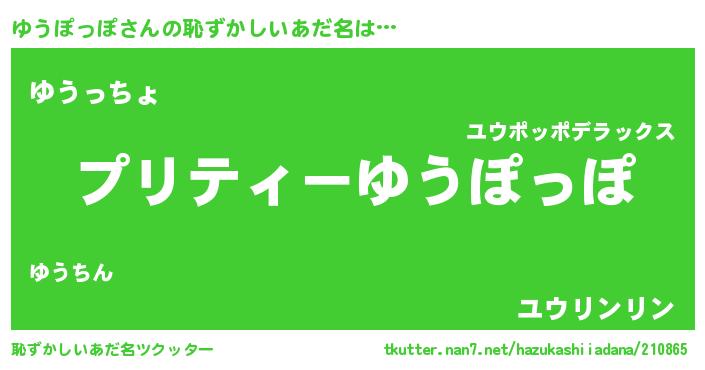 | 女子向けラノベタイトル風あだ名 | 『(仮)ゆうぽっぽのやんごとなき事情』 |