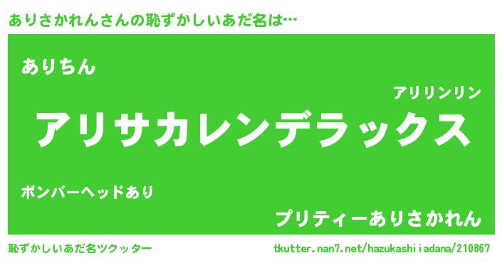 | ヘコむあだ名 | 『ありさかれん(爆)』『ありふぇ~』 |