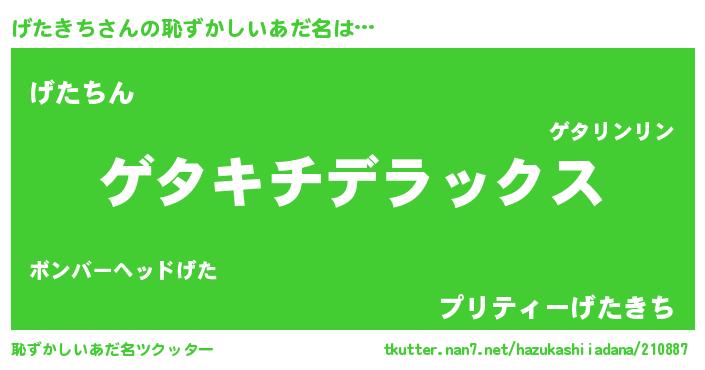 | 意味不明あだ名 | 『自称げたきち』『永久保存げたきち』 |