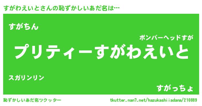 | ヘコむあだ名 | 『すがもー』『すがわえいと(笑)』 |