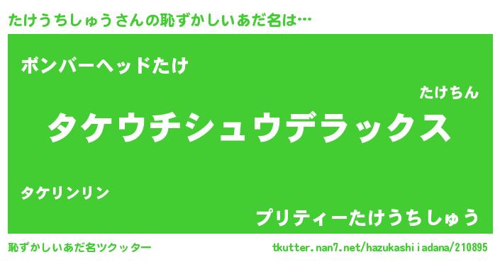 | ヘコむあだ名 | 『たけにゅー』『たけうちしゅう(笑)』 |