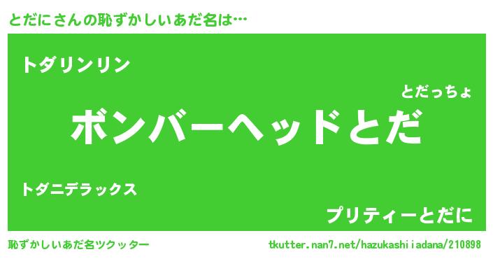 | ピコ太郎風あだ名 | 『トト太郎』『トダ十郎』『トコ太郎』 |