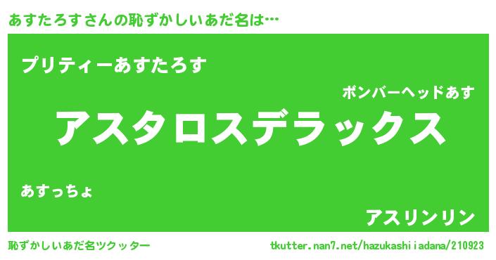 | 女子向けラノベタイトル風あだ名 | 『あすたろすなんてお断りですっ。』 |