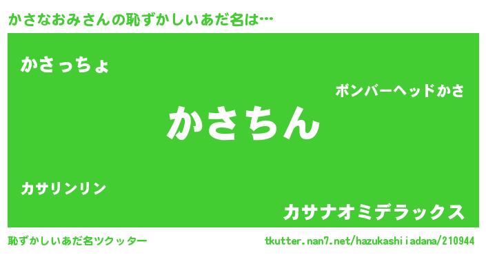 | 男性向けラノベタイトル風あだ名 | 『カサナオミスレイヤー』 |
