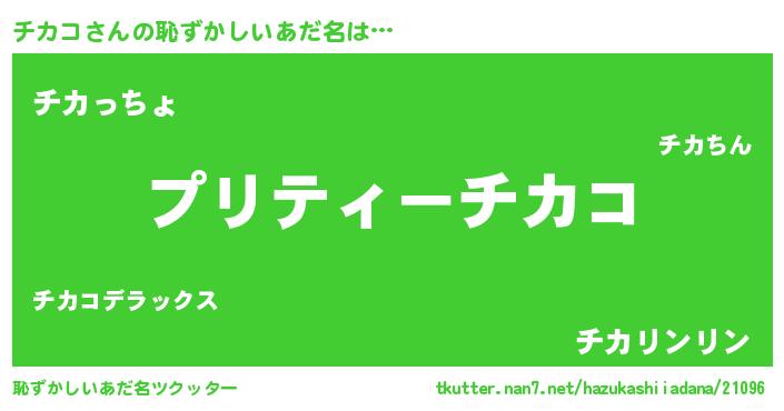 | ヒーロー風カッコイイあだ名 | 『スーパーチカコ』『ウルトラチカコマン』 |