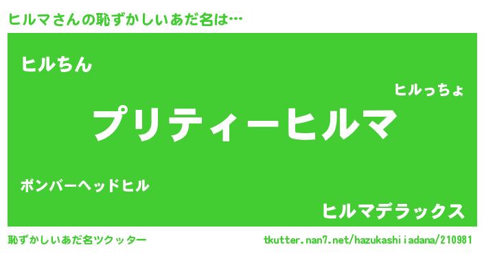 | 胡散臭い通販商品みたいなあだ名 | 『必ず成功する水晶球…その名も「ヒルマ」』 |