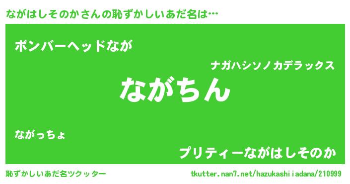 | 意味不明あだ名 | 『永久保存ながはしそのか』 |