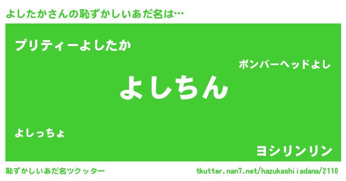 | 胡散臭い通販商品みたいなあだ名 | 『絶対に幸福をもたらす健康食品…その名も「よしたか」』 |
