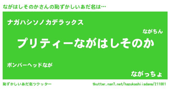 | 意味不明あだ名 | 『ペロリンながはしそのか』 |