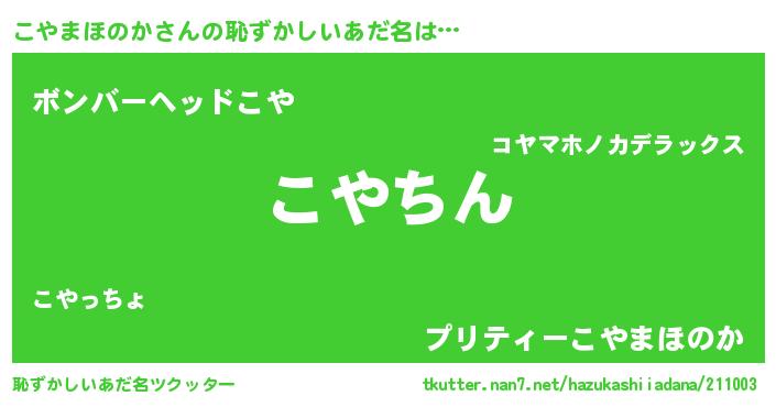 | ヘコむあだ名 | 『こやまほのか(苦笑)』『こやにゅー』 |