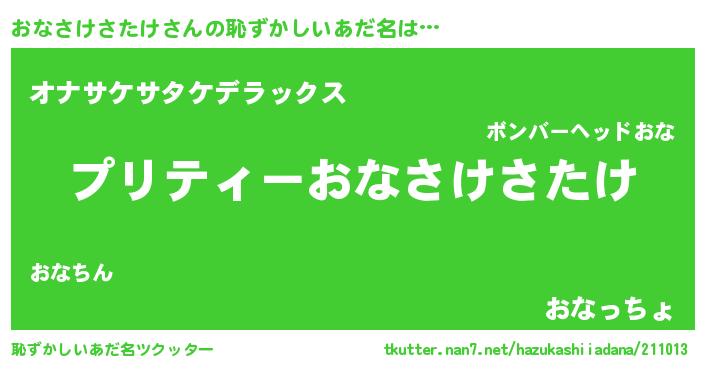 | 男性向けラノベタイトル風あだ名 | 『この素晴らしい世界におなさけさたけを!』 |
