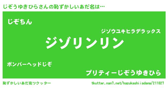 | 女子向けラノベタイトル風あだ名 | 『じぞうゆきひら様がみてる』 |