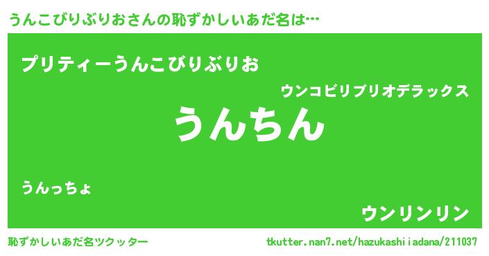 | 意味不明あだ名 | 『永久保存うんこびりぶりお』 |