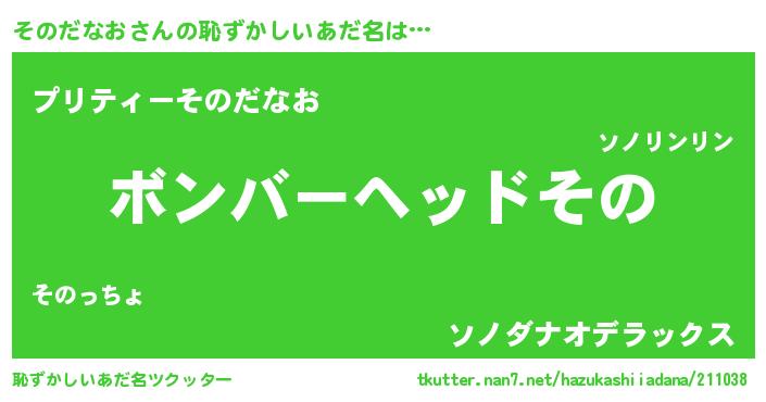 | 男性向けラノベタイトル風あだ名 | 『ソノダナオスレイヤー』 |