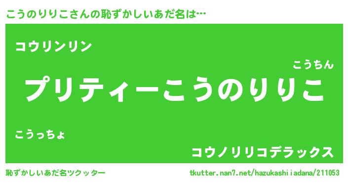 | 男性向けラノベタイトル風あだ名 | 『こうのりりこの憂鬱』 |