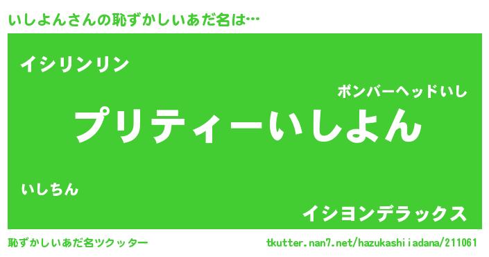 | 男性向けラノベタイトル風あだ名 | 『いしよんの憂鬱』 |