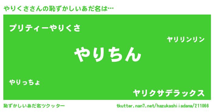 | ピコ太郎風あだ名 | 『ピコヤ郎』『ヤコ一郎』『ヤリ二郎』 |
