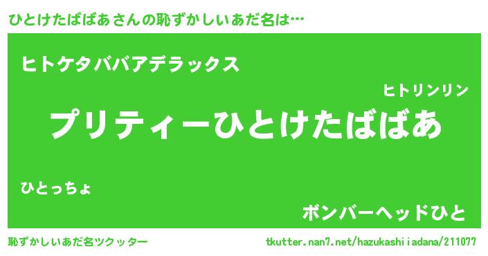 | ヒーロー風カッコイイあだ名 | 『スーパーヒトケタババア』 |