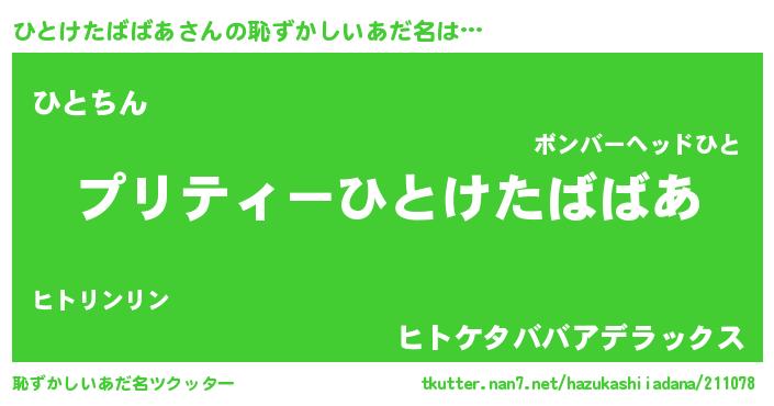| ヒーロー風カッコイイあだ名 | 『スーパーヒトケタババア』 |