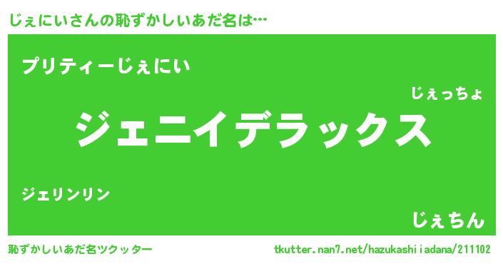| ヘコむあだ名 | 『じぇにゅー』『じぇにい(震え声)』 |