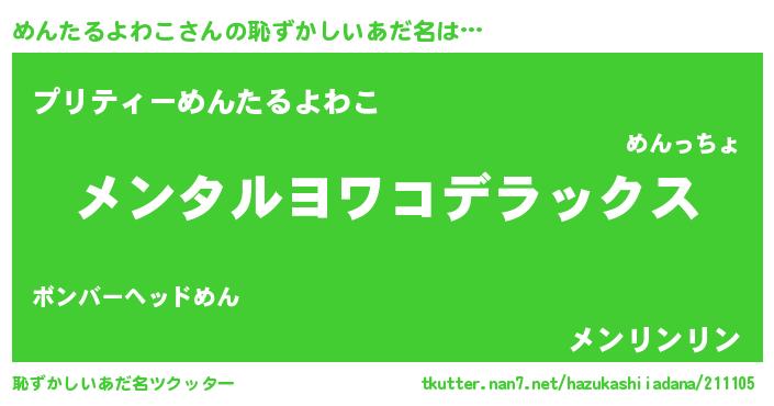| 意味不明あだ名 | 『自称めんたるよわこ』 |