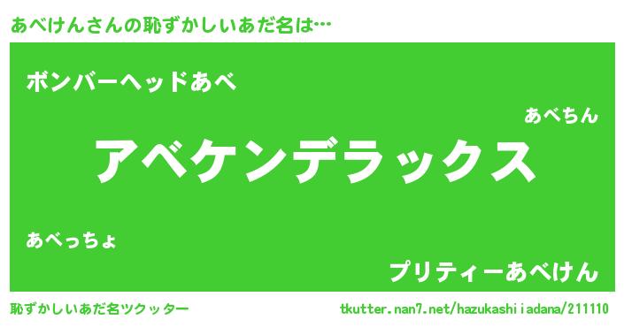 | ヒーロー風カッコイイあだ名 | 『超時空戦士アベケン』『仮面アベダー』 |