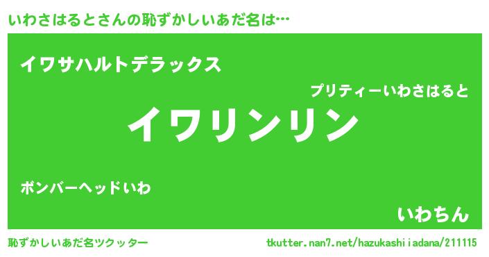 | 意味不明あだ名 | 『住所不定無職いわさはると(95歳)』 |