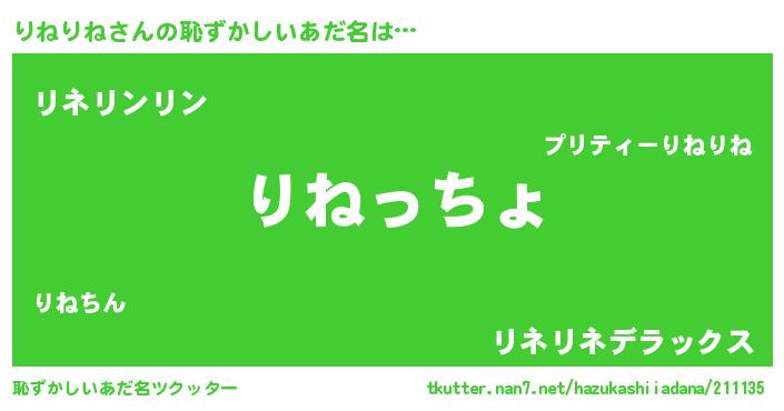 | 欧米人風あだ名 | 『りねりねクリステル』 |